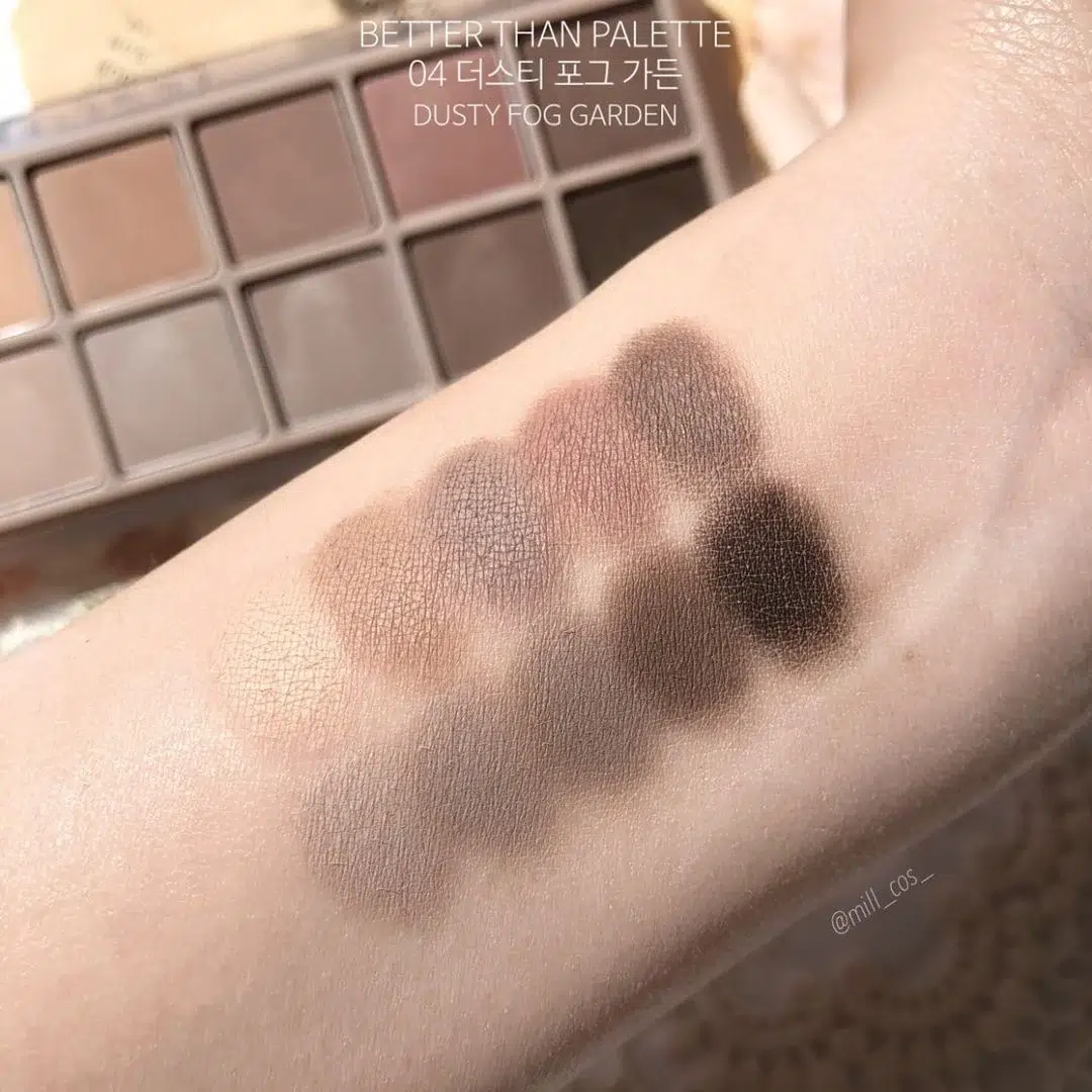 Descubre la elegancia y sofisticación en cada aplicación con la ROM&ND Better Than Palette – Paleta de sombras #04 DUSTY FOG GARDEN. Esta paleta de sombras, inspirada en la tranquilidad de un jardín brumoso, ofrece una selección de tonos cuidadosamente curados para resaltar tu belleza natural y permitirte crear looks versátiles.