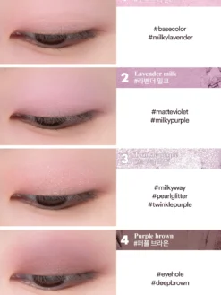 Esta paleta es ideal para quienes desean realzar su mirada sin complicaciones. Su fórmula sedosa asegura una aplicación uniforme y fácil de difuminar, permitiendo transiciones suaves entre colores. Los tonos lavanda proporcionan un brillo único que ilumina los ojos y destaca su profundidad.
