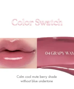 Descubre el brillo y la sofisticación con el ROM&ND GLASTING COLOR GLOSS – Labial Gloss #04 GRAPY WAY. Este brillante labial coreano eleva tu look con un acabado luminoso y un color vibrante que captura la esencia de la elegancia moderna. Perfecto para cualquier ocasión, este gloss es el compañero ideal para resaltar tu belleza natural.