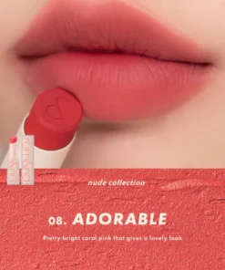- Labial de textura ligera y acabado mate.