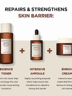 Ingredientes: Centella Asiatica Extract, Butylene Glycol, Glycerin, Water, Propanediol, Caprylic/Capric Triglyceride, Niacinamide, Lactobacillus/Centella Asiatica Extract Ferment Filtrate, 1,2-Hexanediol, Dipropylene Glycol, Polyglyceryl-3 Distearate, Acrylates/C10-30 Alkyl Acrylate Crosspolymer, C14-22 Alcohols, Arginine, Hydrogenated Lecithin, Betaine, Allantoin, Panthenol, Hydroxystearic Acid, Ethylhexylglycerin, Hydroxyethy Acrylate/Sodium Acryloyldimethyl Taurate Copolymer, Glyceryl Stearate Citrate, Sodium Polyacrylate, Adenosine, C12-20 Alkyl Glucoside, Cetearyl Alcohol, Xanthan Gum, Macadamia Ternifolia Seed Oil, Sodium Phytate, Sodium Hyaluronate, Stearic Acid, Ceramide NP, Glyceryl Acrylate/Acrylic Acid Copolymer, Sorbitan lsostearate, Polyglycery-10 Myristate, Madecassic Acid, Asiaticoside, Phytosphingosine, Aslatic Acid, Sucrose Distearate, Polyglutamnic Acid, Glucose, Lauric Acid, Phytosterols