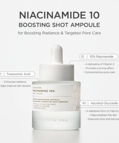 La Niacinamida al 10% y el Ácido Tranexámico combaten los poros horizontales, verticales y pigmentados, al tiempo que refinan y suavizan la piel. Enriquecida con Ascorbil Glucósido para uniformar el tono de la piel y conseguir un efecto iluminador general. La fórmula ligera de la ampolla proporciona un acabado refrescante e hidratante.
