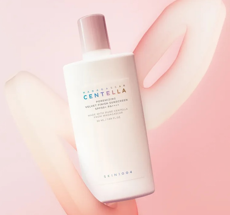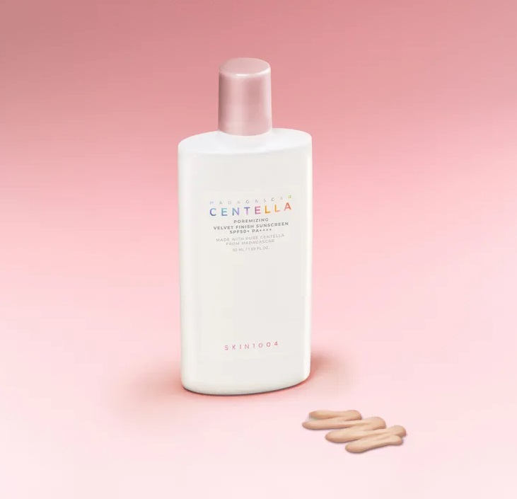Poremizing Velvet Finish Sunscreen de SKIN1004 ofrece una alta protección SPF50+ PA++++, mientras suaviza visiblemente la textura de la piel gracias al extracto puro de Centella de Madagascar y un complejo de ingredientes que ayudan a minimizar visiblemente los poros y controlar el exceso de sebo.