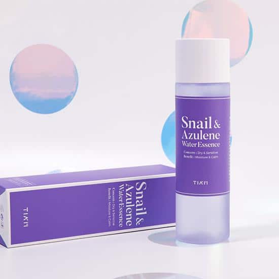 - Esencia acuosa con un 87% de filtrado de baba de caracol y azuleno que previene la pérdida de humedad y restaura el equilibrio hidrolipídico de la piel, mientras la mantiene calmada e hidratada.