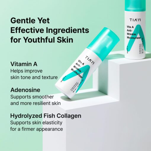 Con su contenido de Retinol (palmitato de retinilo 5550 ppm) la crema ayuda a reducir la apariencia de arrugas y líneas de expresión, además de mejorar la textura y firmeza de la piel. Además su fórmula contiene concentrado de colágeno que aporta tersura a la piel y minimiza las irregularidades del relieve. El colágeno también actúa como un componente que retiene la humedad.