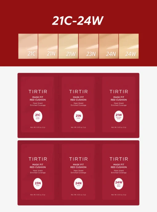 Descubre la perfección en el maquillaje con el TIRTIR Mask Fit Red Cushion – 6 Sachets Tonos 21 C – 24 W (#2). Diseñado para ofrecer un acabado impecable mientras cuida tu piel, este producto es un imprescindible para cualquier amante de la belleza coreana. Ideal para pieles mixtas, asegura una cobertura uniforme y una sensación ligera que dura todo el día.