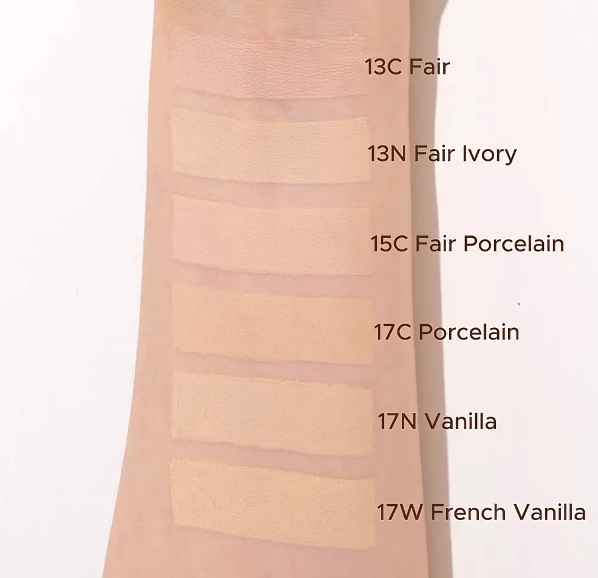 - Disponible en tonos 13 C a 17 W, adaptándose a diferentes tonos de piel.